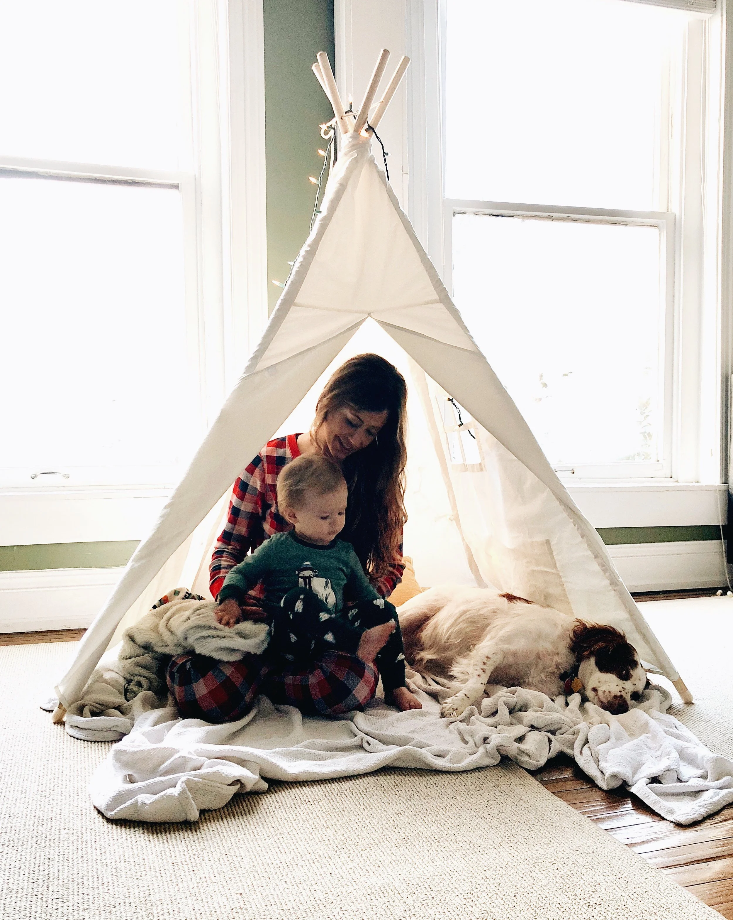 I think I ended up loving the unexpected and anticipated memories equally. The hard work we put into creating a comforting and homey feel even though we don’t have a space of our own right now, the first cute Airbnb canceling on us a couple days before Christmas Eve, and booking a second place that was “not so cute” - then having to be super inventive to make it magical. Taking three trips back and forth on Christmas Eve, then dropping and losing a bunch of our food, and the constant state of tired I felt. All of this mixed with the smell of ham cooking and Emet getting so excited to see the living room all lit up with lights on Christmas morning. Emet playing new “songs” on his guitar for us, running into his teepee for the first time, and getting lost in imagination with his fire truck. Taking almost two days to open the small amount of gifts we had for him because he wanted to play with one at a time. The dear loved ones we got to hug tight and catch up with. The magical snowfall we got on Christmas Eve. Being together with nowhere to go and laying on the floor playing with toys.