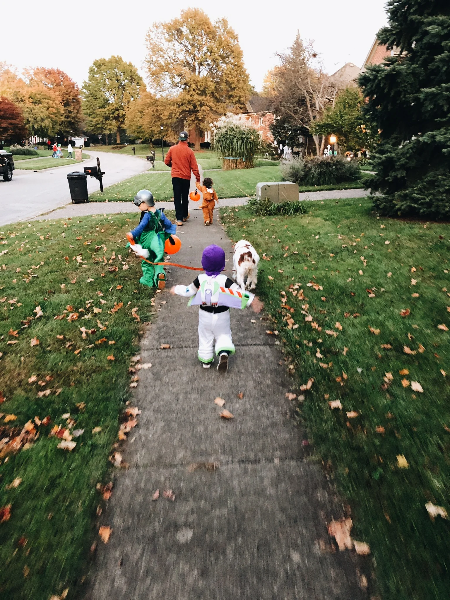We spent the evening of Halloween walking around the neighborhood with close friends, enjoying the crisp weather, drinking cider, and laughing so much as our children collected candy.
