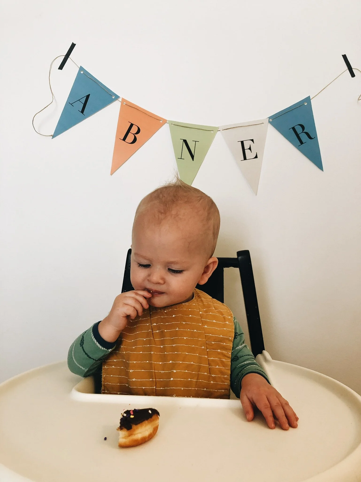 The next morning, Calvin went out and picked up donuts for all of us. We’ve tried to keep donuts and sweets from our boys when they’re babies and introduce cake, donuts, etc. on their birthday. Well, needless to say, Abner was a big fan.