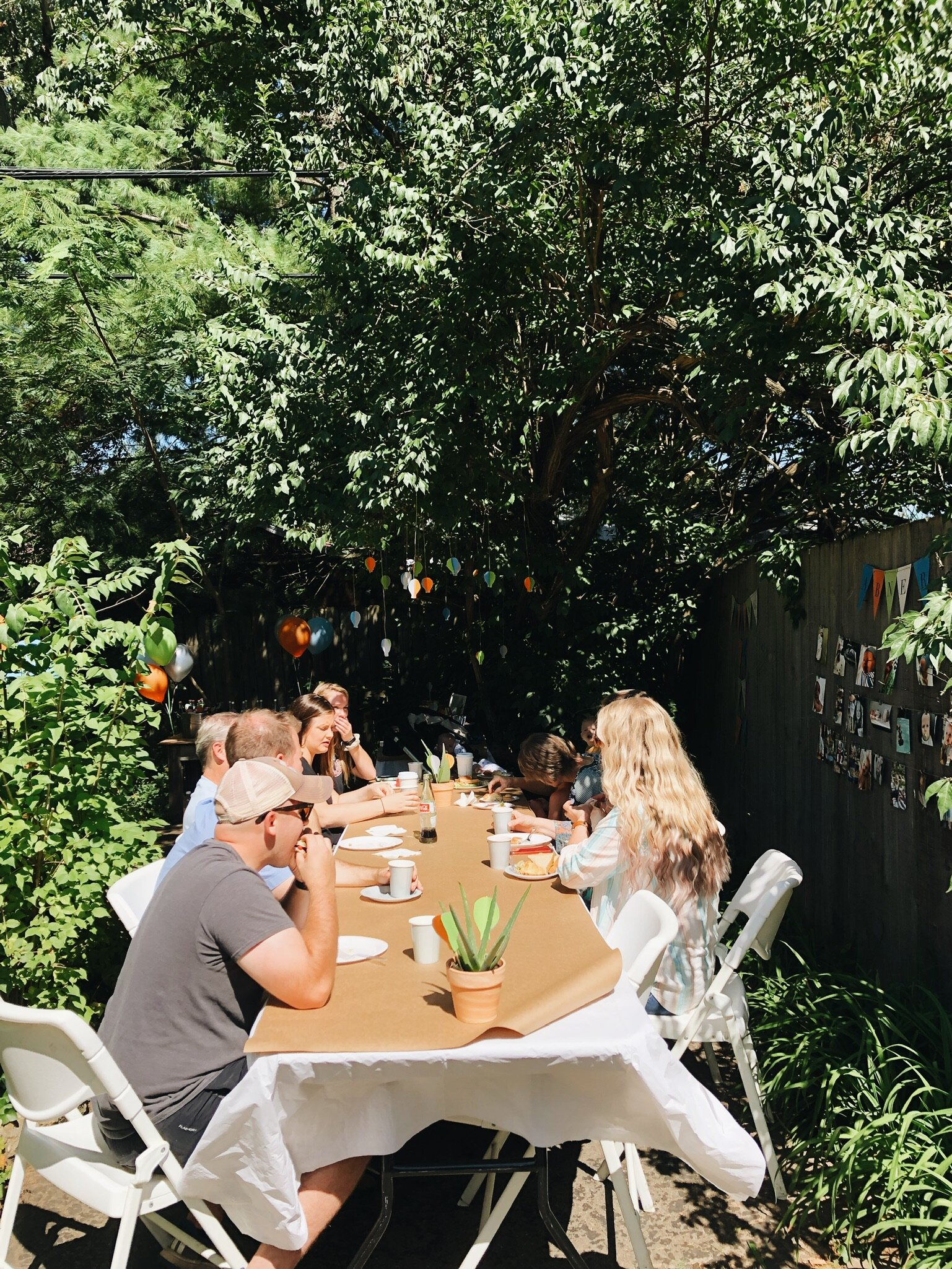 We made some hanging hot air balloon mobiles to hang in the trees and in some of the windows inside the house. It really helped pull together the theme of the party. We also used the soundtrack from the movie Up on repeat in the background throughout the day. With the combination of the breezy weather and whimsical music, it felt like time stood still for a brief moment.