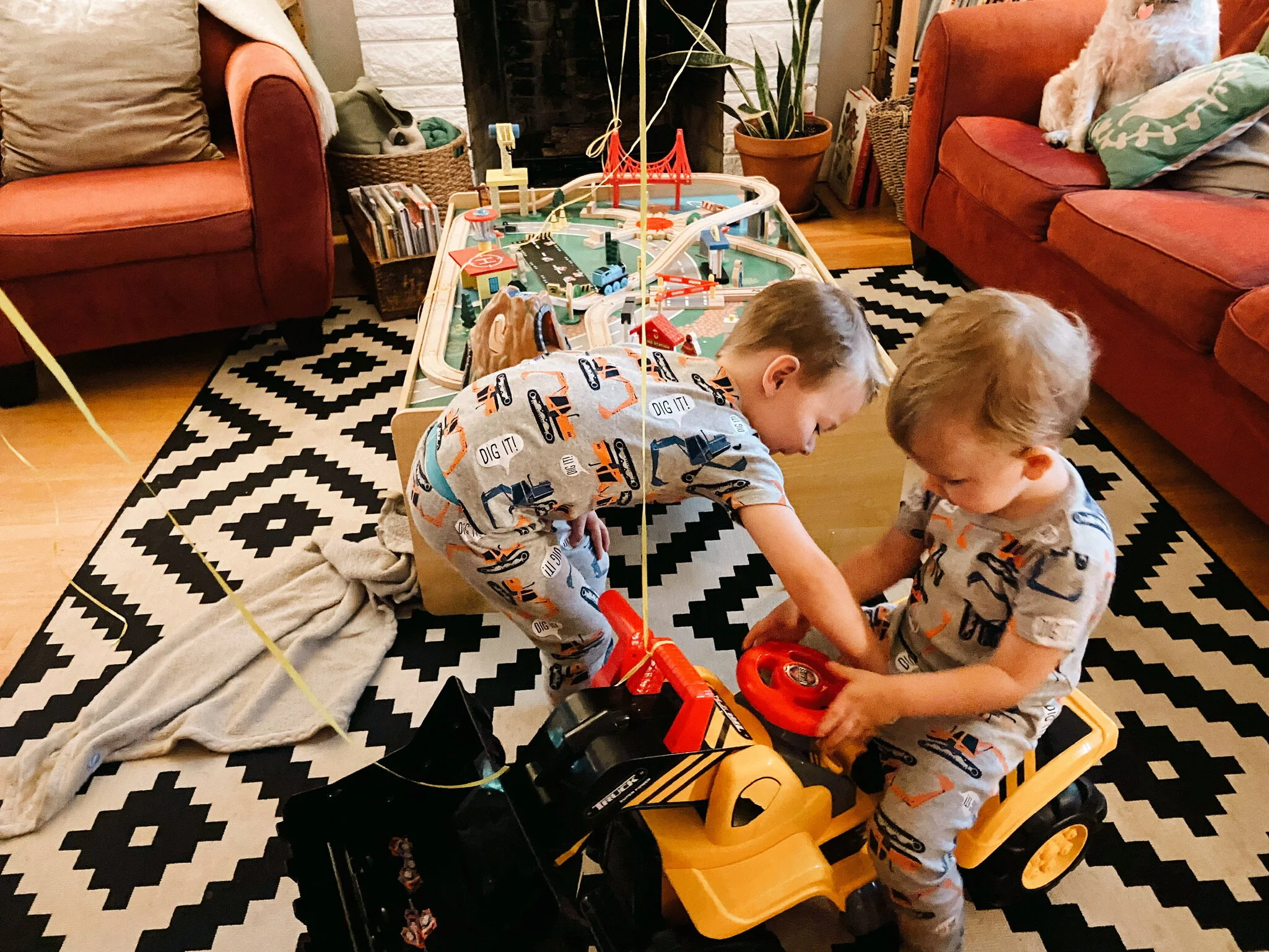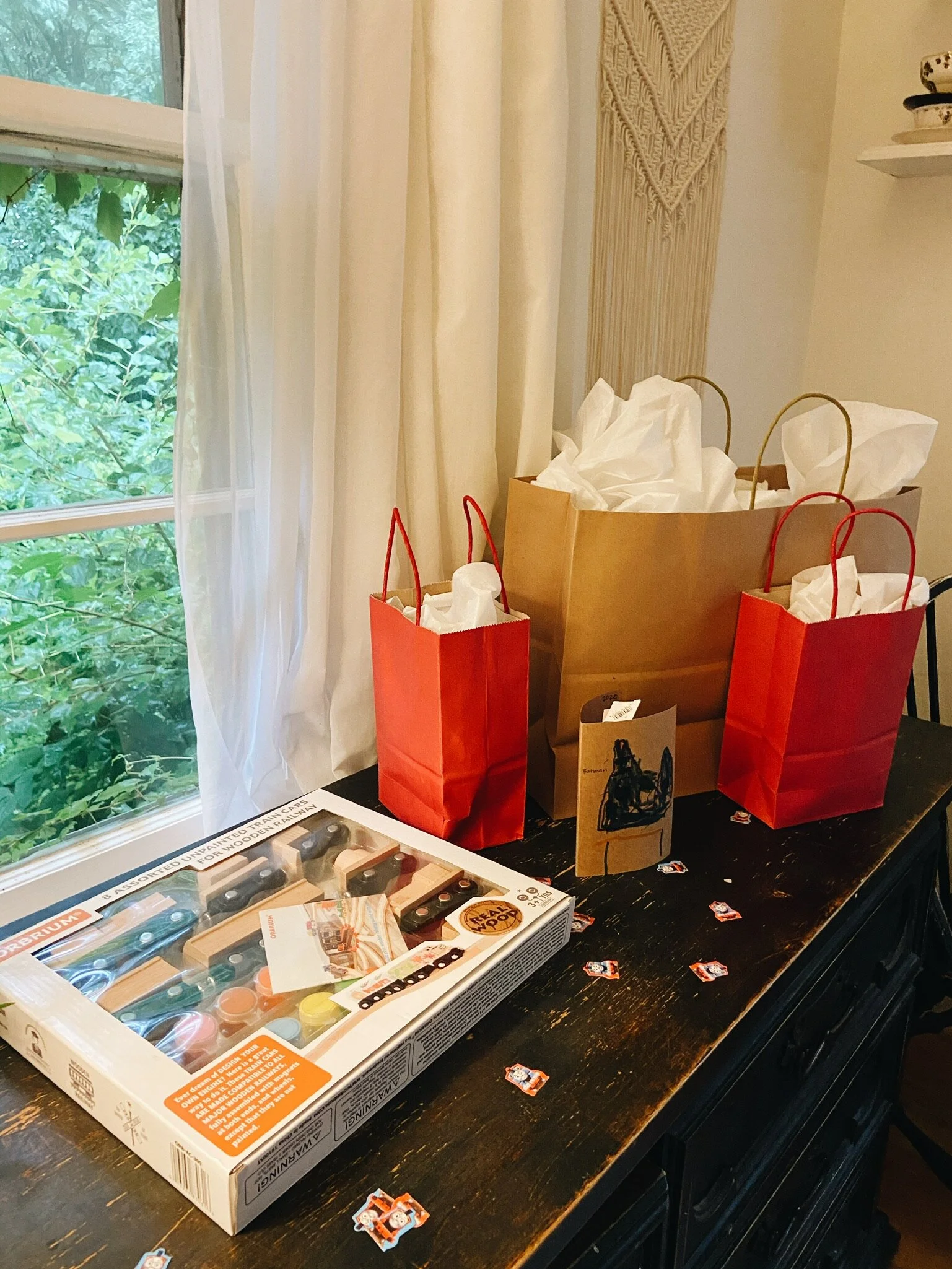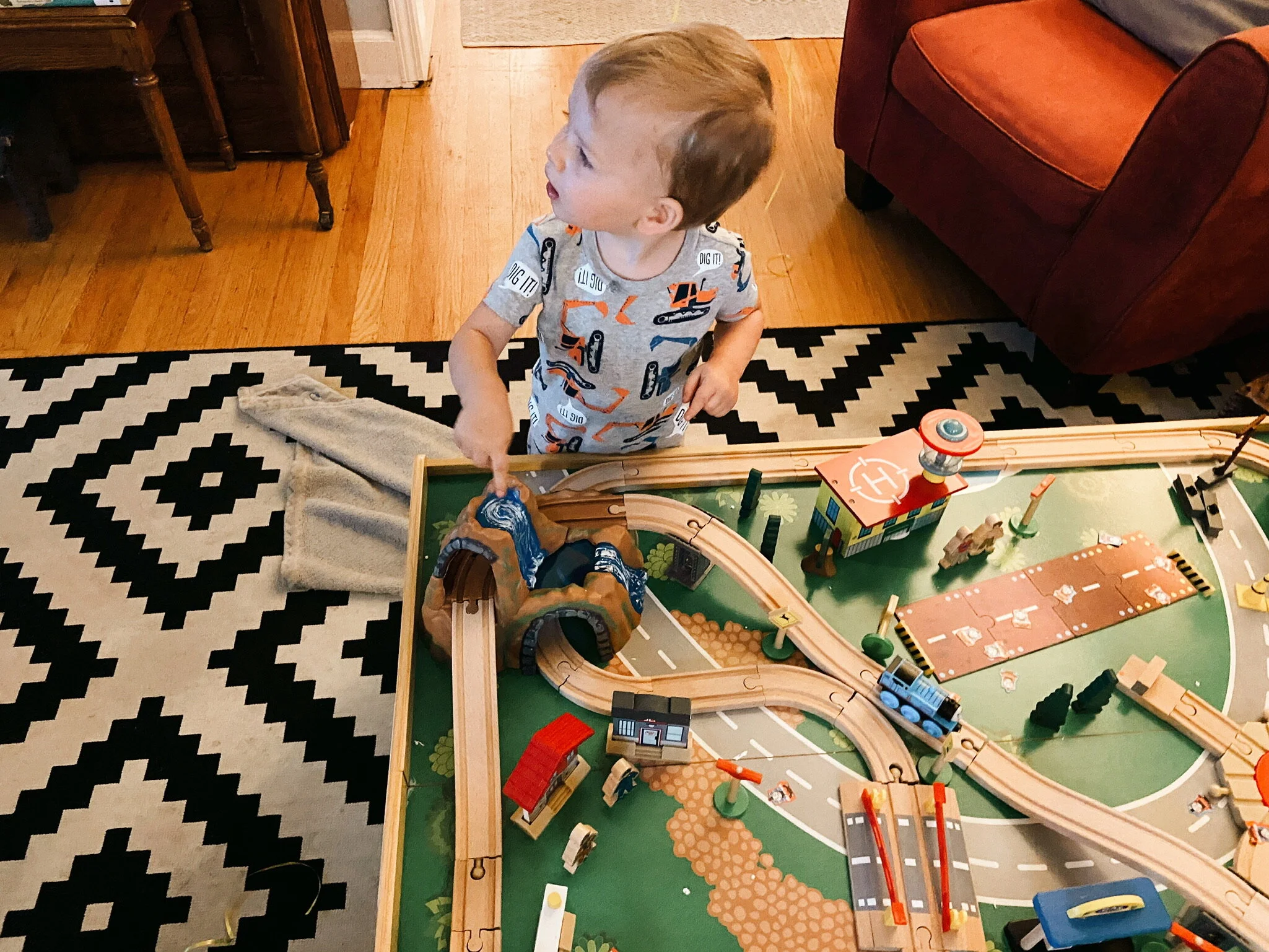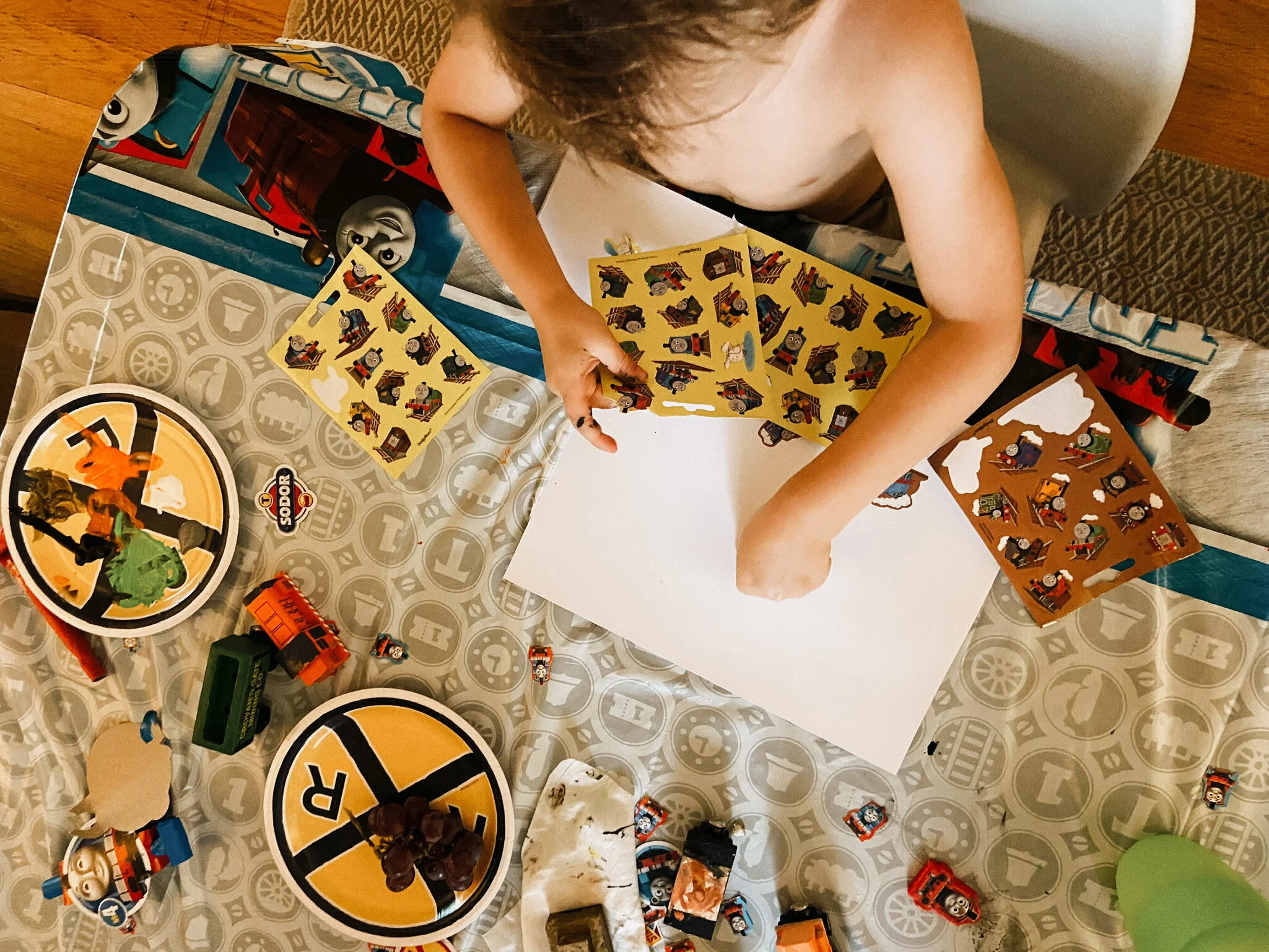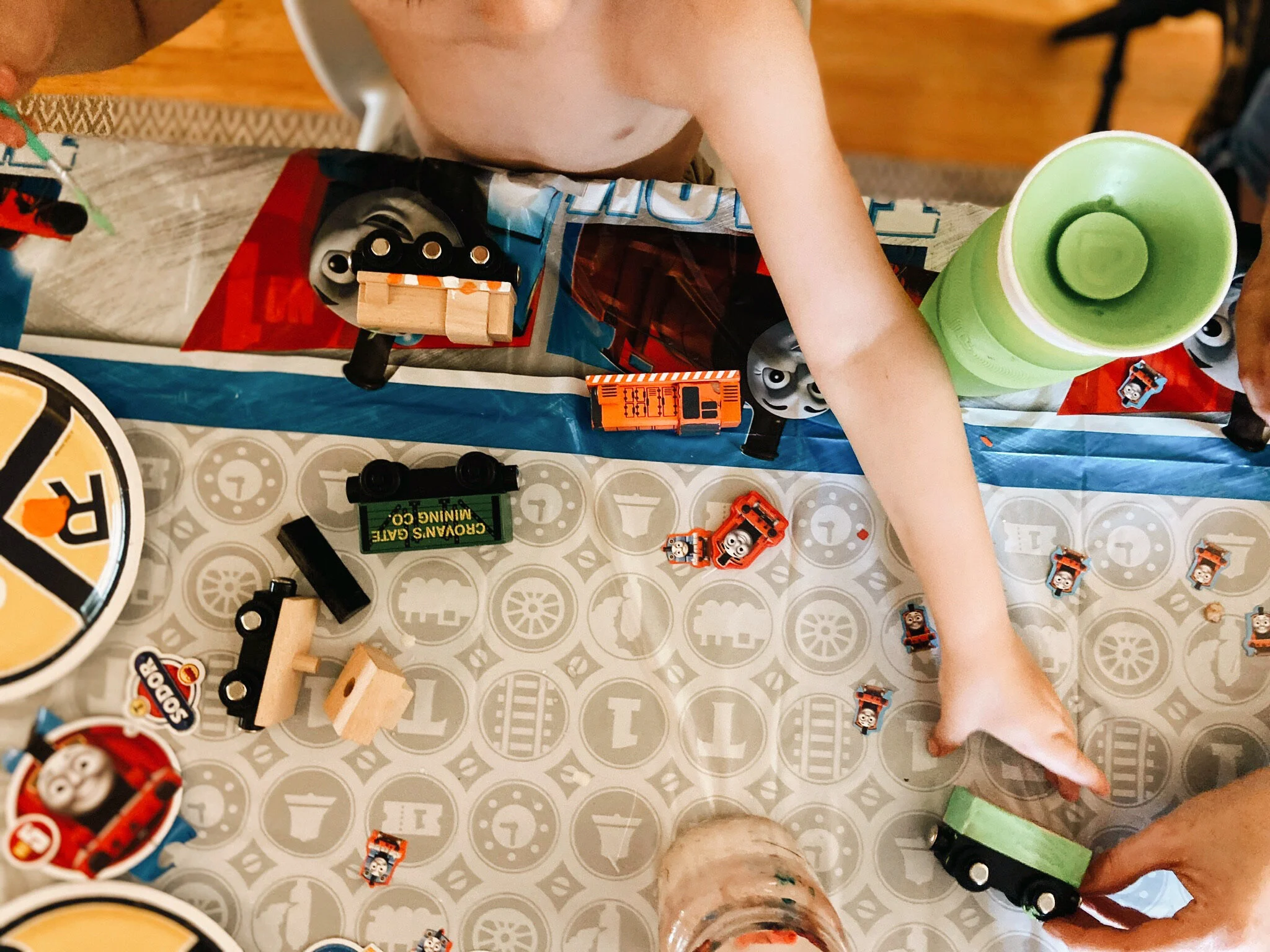 You never know what things your children are going to attach themselves to. Abner has grown a love for construction vehicles, Thomas / trains in general, and good food. We themed his birthday around trains and spent the day playing on his new train set, painting, driving around on his new digger, and eating lots of food.