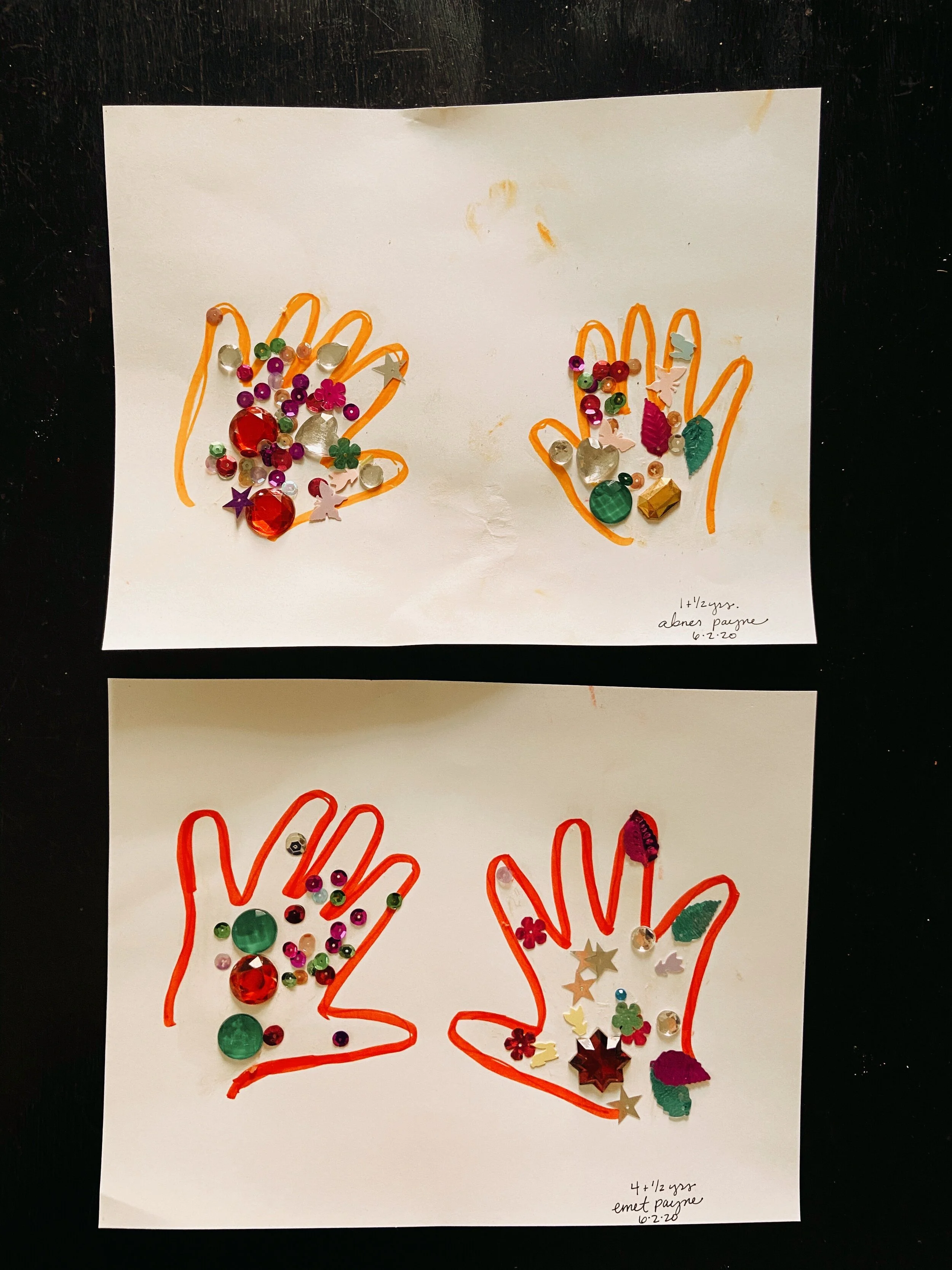 There are a variety of ways you can create hand art. You can do more structured things like turning their handprints into: