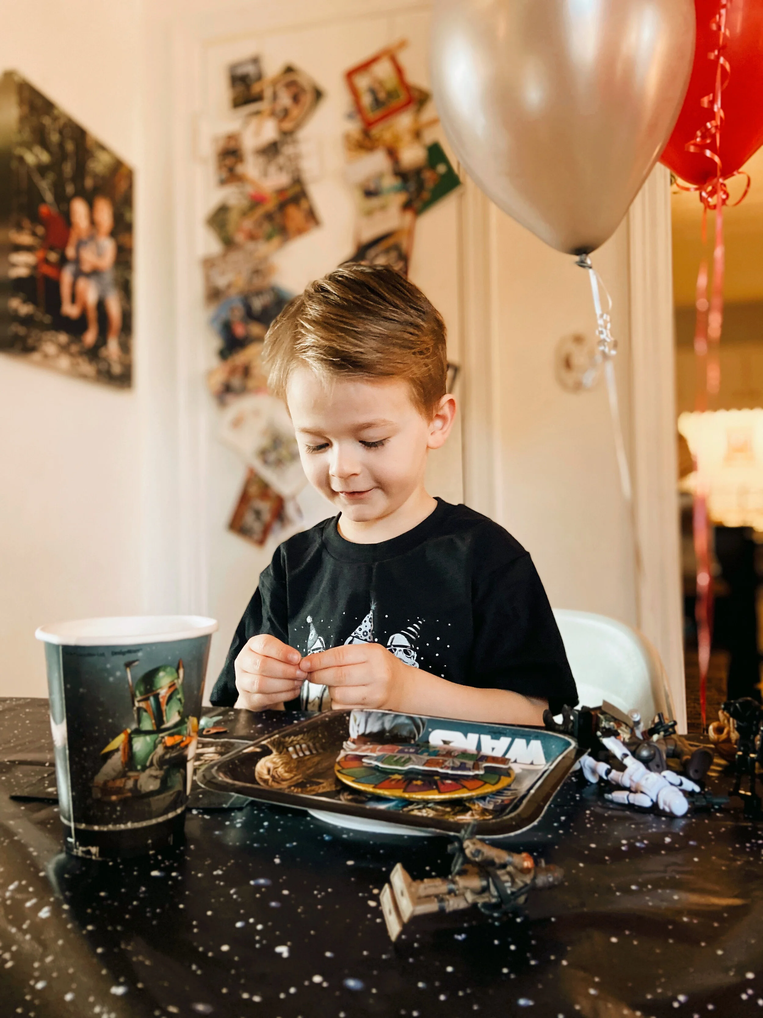 Turning 5 is a big deal. Well, every birthday in the Payne home is a big deal. ;) As you know, around here we don't just have a birthday, we celebrate a birthday week. Last year we had a big party for Emet when he turned 4 and invited all of his friends to join him at the trampoline park. It was one of the last big social events that we've been a part of since COVID. So naturally, this year was going to look a little different. I asked Emet what theme he wanted for his birthday. I was not surprised when he told me he wanted to have a Star Wars / Mandalorian themed birthday.