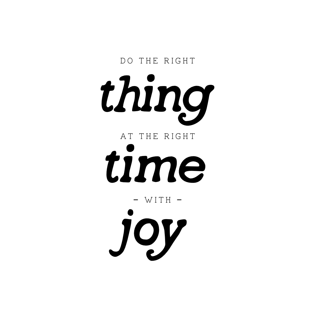 At the right time… Even if I determine that I'm doing the right thing, it’s possible that it may not be the right time to take action. Life is more than what is important to me. My decisions and actions affect others around me. I want to think highly of others and looks for way to serve.